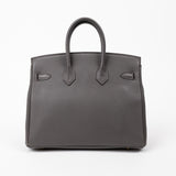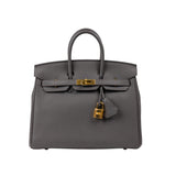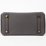 Experience the unmatched craftsmanship and prestige of Hermès with this Birkin 30 in Etain Gray Togo leather, finished with luxurious gold hardware. The supple, pebbled Togo leather offers a perfect balance of structure and softness, while the elegant neutral tone makes it a timeless addition to any collection. Featuring the iconic flap closure, double rolled handles, and signature lock and keys with a clochette. The Birkin opens to a leather lined interior with one zipper and patch pocket. This bag exemplifies understated sophistication. Meticulously handcrafted in France, it’s a true collector’s piece that embodies the pinnacle of luxury.