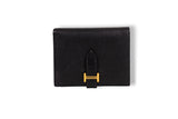 This Hermès Béarn wallet is a timeless classic, crafted in luxurious black leather with a refined grain texture. The signature “H” tab closure in gold-tone hardware adds an iconic touch while securing a meticulously organized interior designed for cards, cash, and essentials. Elegant, slim, and sophisticated, the Béarn is one of Hermès’ most coveted small leather goods, perfect for both daily use and elevated styling.