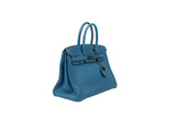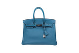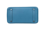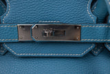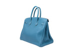 This Hermès Birkin 35 is crafted from Togo leather in the coveted Blue Jean colorway and accented with palladium hardware. Spacious and refined, it remains one of the most iconic luxury handbags ever created.