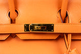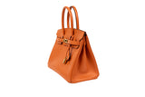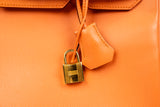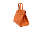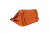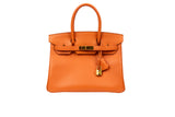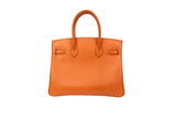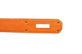 This Hermes Birkin 30 is crafted in vibrant Orange Epsom leather with structured grain and finished with polished gold hardware. The iconic Birkin silhouette features dual rolled handles, a belted front flap closure, lock and key set with clochette, and a spacious interior lined in matching leather. Lightweight, elegant, and built for decades of wear, this Birkin is a timeless collector’s staple in one of Hermes’ most coveted colors.