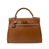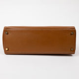 Refined and timeless, this Hermès Kelly 32 in Gold Togo leather with gold hardware epitomizes classic Parisian elegance. Handcrafted in France, it features a structured silhouette, single top handle, and the signature Kelly turn-lock closure. The interior opens to a spacious leather-lined compartment with multiple pockets for organization. A symbol of sophistication and status, this Kelly bag seamlessly transitions from day to evening, offering enduring style and impeccable craftsmanship.