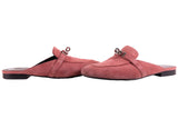 These Hermès slip-on loafers feature a refined suede upper in a soft pink tone, designed with the brand’s signature lock hardware detail for an understated yet elevated finish. Crafted with a backless mule-style silhouette, they offer effortless wear while maintaining Hermès’ timeless elegance. The low-profile sole provides comfort and versatility, making them ideal for both casual and polished looks.