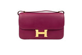 This Hermes Constance 24CM bag is crafted from durable Tosca purple Epsom leather and finished with the signature gold-tone H clasp. The structured silhouette, adjustable shoulder strap, and timeless design make it one of Hermes’ most iconic everyday styles. A sophisticated piece that adds a refined pop of color to any collection.