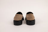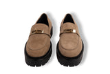 Material: Suede with gold-tone hardware, lug rubber sole