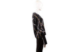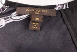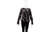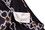 This Louis Vuitton silk blouse features an elegant chainline motif rendered in black, white, and gold tones. Crafted from smooth silk, the design showcases a fluid drape with a refined silhouette and long sleeves, making it a versatile statement piece suitable for both elevated daytime wear and evening styling. The graphic chain print reflects Louis Vuitton’s signature luxury aesthetic with a modern edge.