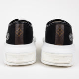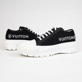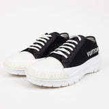 These Louis Vuitton Graphic Sneakers feature a sleek and sporty silhouette crafted from black mesh and smooth white leather. Designed with bold LV logo detailing on the side panels, these sneakers merge contemporary streetwear aesthetics with Louis Vuitton’s luxury craftsmanship. The ribbed rubber toe cap and treaded outsole add both texture and durability for all-day comfort and style.