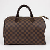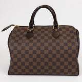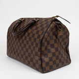 The Louis Vuitton Brown Damier Ebene Speedy 30 is one of the most iconic silhouettes from the House of Vuitton. Designed with the brand’s signature checkered canvas and finished with rich dark brown leather trim and gold-tone hardware, this 30cm Speedy is the perfect everyday luxury handbag. Its structured yet lightweight shape offers both style and practicality, making it a timeless addition to any collection.