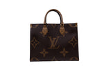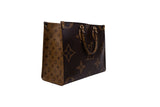 The Louis Vuitton Onthego PM is a chic and practical tote designed for everyday versatility, featuring a striking play on the house's Monogram and Monogram Reverse patterns in Giant canvas. Its structured silhouette is complemented by Toron handles and a long shoulder strap, offering multiple carrying options for the modern woman.