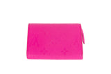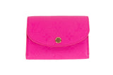 This Louis Vuitton Murakami MC wallet is crafted from vibrant pink Empreinte leather, featuring a compact envelope-style silhouette with a snap-button closure. The textured grained leather offers a soft yet structured feel, while the minimalist design highlights the iconic Louis Vuitton craftsmanship. A functional and collectible piece that blends playful color with refined luxury, ideal for everyday use or as a statement accessory.
