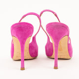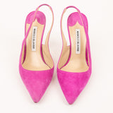 The Manolo Blahnik Suede Slingback Heels in vibrant pink exude timeless femininity. Crafted from soft suede with a pointed toe and elegant stiletto heel, these classics embody effortless sophistication for both day and evening wear.
