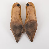 Manolo Blahnik Tan Leather Pointed Heels with Bow