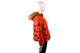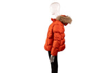 This Weekend Max Mara hooded puffer jacket features a vibrant orange nylon shell with a classic quilted construction and cozy insulated fill. Designed for warmth and everyday wear, it includes a zip-front closure, functional side pockets, and a detachable hood accented with fur trim. A practical yet elevated outerwear piece ideal for cold-weather styling.