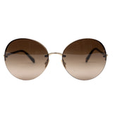 The Oliver Peoples Jorie Sunglasses combine classic sophistication with modern elegance. Featuring oversized round frames and warm brown gradient lenses, these sunglasses provide both high-fashion appeal and superior UV protection. The lightweight gold-tone metal frame offers a luxurious touch, complemented by slim temples and adjustable nose pads for a comfortable fit.