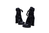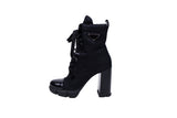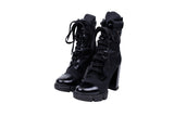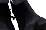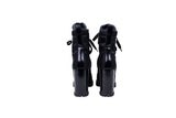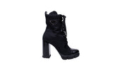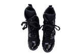 These Prada Monolith boots are a bold statement of industrial-inspired luxury, featuring a combination of brushed leather and the brand's signature Re-Nylon. Defined by their oversized lugged rubber soles and detachable nylon pouches, these combat boots offer a unique fusion of utilitarian function and high-fashion edge.