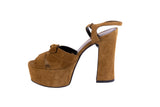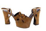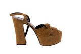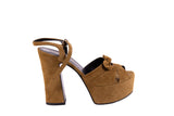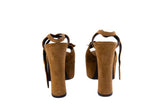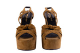 Saint Laurent Tan Brown Platform Suede Sandals Size 35.5