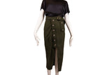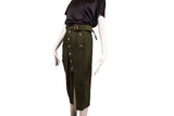Self-Portrait Olive Green Button-Front Ruched Cotton Skirt Size 2
