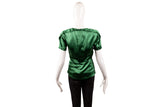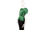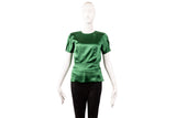 This Stella McCartney short sleeve top is crafted from luxurious green satin silk with a smooth, lustrous finish. Designed with a clean round neckline and a tailored waist seam, this piece offers a refined silhouette that transitions effortlessly from day to evening. Elegant and minimalist, it reflects Stella McCartney’s signature modern sophistication.