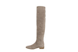 These Stuart Weitzman ankle boots are expertly crafted from premium suede in a versatile beige hue. Featuring a sleek silhouette and a low block heel, they offer a sophisticated blend of comfort and timeless style for any high-end wardrobe.