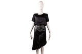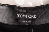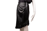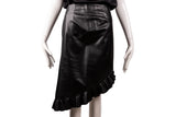 This Tom Ford skirt is crafted from smooth black leather and designed with a sleek, fitted silhouette. Featuring an asymmetrical ruffle hem detail, this piece adds movement and edge to a classic leather skirt, making it ideal for elevated evening styling or modern day-to-night wear.