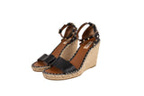 These Valentino espadrille wedges are crafted from textured leather and feature signature Rockstud detailing with braided rope soles. A bold yet wearable design that blends iconic Valentino hardware with relaxed summer styling.