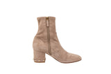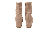 These Valentino booties are crafted from supple suede and feature a sleek ankle-height silhouette with a block heel accented by signature stud detailing. A refined yet modern design, they offer everyday versatility with elevated luxury appeal.