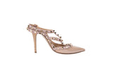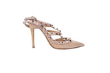These Valentino Rockstud slingback heels are crafted from glossy patent leather and finished with gold-tone pyramid studs. A timeless silhouette with elevated detailing, they are ideal for both formal and evening wear.