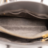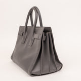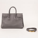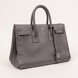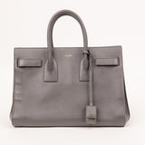 The YSL Sac De Jour Small in gray calfskin leather is a modern classic, combining sleek minimalism with Parisian sophistication. Crafted from premium smooth leather, it features structured sides, rolled top handles, and accordion-style gussets that expand for versatility. Finished with subtle Saint Laurent embossing and a detachable shoulder strap for versatile wear.