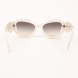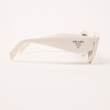 These Prada SPR531 sunglasses feature a bold white acetate frame with a sculpted cat-eye silhouette and gradient lenses. Lightweight, modern, and fashion-forward, they offer clean lines, signature Prada styling, and comfortable everyday wear.