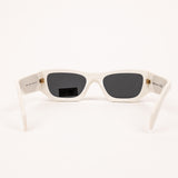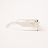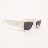These Prada White Square Sunglasses feature a bold, modern silhouette crafted from smooth white acetate. The sharp square frame is balanced by deep black lenses that offer full UV protection while keeping the look sleek and minimal. Light yet substantial, they add an effortless designer edge to casual outfits, beachwear, or elevated street style.