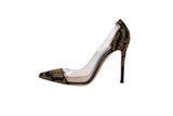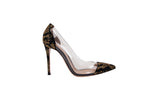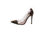 These Gianvito Rossi pumps are crafted from clear vinyl with gold stud embellishments, offering a striking modern design with elegant craftsmanship. A statement heel ideal for evening and special occasions.
