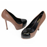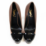 Saint Laurent Nude and Black Leather Patent Leather Tribtoo Color Block Pumps 39