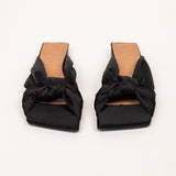 These Ganni Satin Tie Flats offer an effortless, chic finish to casual and elevated looks. Designed with soft black satin and a signature knotted front detail, they blend minimalism with Scandinavian cool. The square toe and low profile give them a modern silhouette that pairs perfectly with summer dresses, denim, or tailored trousers.