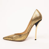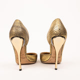 Jimmy Choo Gold Embossed Snake Heels Gold Snake Pointed Toe Size 37.5
