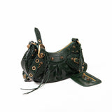 Forest green calf leather Le Cagole XS shoulder bag from BALENCIAGA.