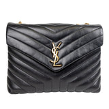 Saint Laurent YSL Black Matelasse Leather LouLou Medium Chain Bag