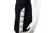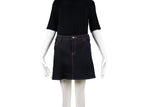 This Moschino skirt features a unique two-tone design in black with contrasting white and pink top-stitch detailing. The playful yet sharp construction provides a signature Italian aesthetic that is both bold and wearable.