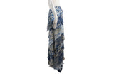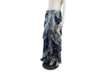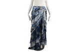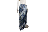 This Ralph Lauren skirt features a vibrant blue and white floral-inspired motif across a unique multi-fabric construction. Detailed with feminine ruffles and a fluid silhouette, this piece captures a classic romantic aesthetic with high-end craftsmanship.