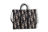 This Dior East West Tote is crafted from the iconic Blue Oblique canvas, offering a bold yet refined statement piece. The structured silhouette is accented with smooth black leather trim and top handles, delivering durability with elevated style. Inside, the spacious open compartment is ideal for travel, work, or daily essentials, while the long leather strap provides versatile carry options. A standout Dior piece combining signature monogram artistry with modern practicality.