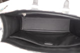 Material: Canvas with black leather trim and silver-tone hardware