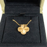 Suspended from a delicate gold chain, the pendant rests gracefully at the collarbone, making it an ideal statement piece for everyday wear or special occasions. Meticulously crafted in France, this necklace exemplifies the sophistication and enduring heritage of Van Cleef & Arpels.