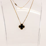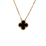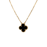 This stunning Van Cleef & Arpels Alhambra pendant is crafted in 18K yellow gold and features a black onyx clover motif framed by VCA’s signature beaded gold border. The elegant pendant sits on a delicate yellow gold chain, offering a timeless and iconic look that pairs effortlessly with any style. Perfect for collectors and those who appreciate fine luxury jewelry.