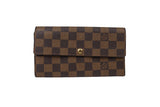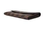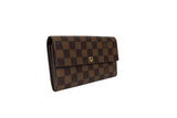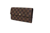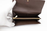 The Louis Vuitton Sarah wallet is a classic envelope-style design, pairing the historic brown Monogram canvas with a grained-leather lining. This elegant snap wallet features a highly functional interior with multiple card slots and a zipped coin pocket, secured by an engraved gold-tone press-stud.