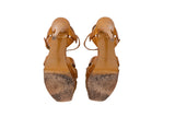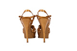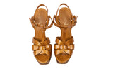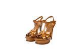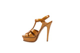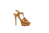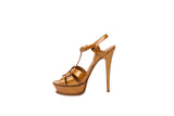 Saint Laurent Tan Brown Patent Leather Tribute Platform Sandals Size 37