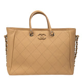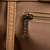 This Chanel Quilted Satchel is an exquisite piece crafted from soft beige calfskin leather with the brand’s signature diamond quilting and the iconic CC logo on the front. It features dual rolled leather handles and a leather-threaded chain shoulder strap, offering versatile carry options. The spacious interior includes multiple compartments lined in fabric, making it both elegant and functional for everyday luxury. Gold-tone hardware complements the beige tone perfectly, adding a refined finish.