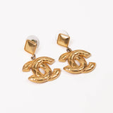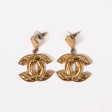 These beautiful vintage earrings feature dangling quilting engraved CCs dangling from golden diamond shapes. These are suitable for most any attire, with the classic appeal only from the house of Chanel!