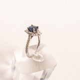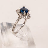 This Gabriell & Co sapphire ring features a striking deep-blue sapphire set in polished 14kt white gold. The center stone is accented by sparkling diamonds arranged in a classic multi-stone design, adding brilliance and contrast. Its elegant, timeless setting makes it perfect for both daily wear and special occasions. A refined piece of fine jewelry with luxurious presence.