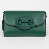The Gucci Azalea 1955 Horsebit Shoulder Bag in green monochrome celebrates Gucci’s signature equestrian aesthetic with a modern twist. Crafted from smooth Italian leather, it features a structured flap closure and the iconic Horsebit hardware in tonal green enamel. The bag includes an adjustable strap for crossbody or shoulder wear, and its sleek profile makes it perfect for day to evening use.