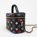 The Louis Vuitton Game On Vanity PM Case Bag is a rare collector’s piece from the playful “Game On” capsule collection, reimagining the classic Monogram with a colorful twist. Crafted in black Monogram canvas with multicolor heart and monogram motifs, it’s accented with gold hardware, a top handle, and a detachable chain strap for crossbody wear. The structured vanity silhouette features a zip-around closure and a compact yet spacious interior perfect for essentials.
